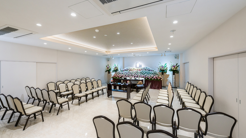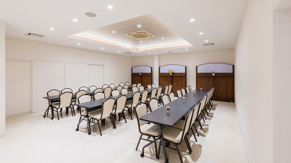 | 規模 | 式場:60席 多目的ルーム「たまゆら」 会食スペース 控室(和室) 控室(洋室) 浴室 バリアフリートイレ |