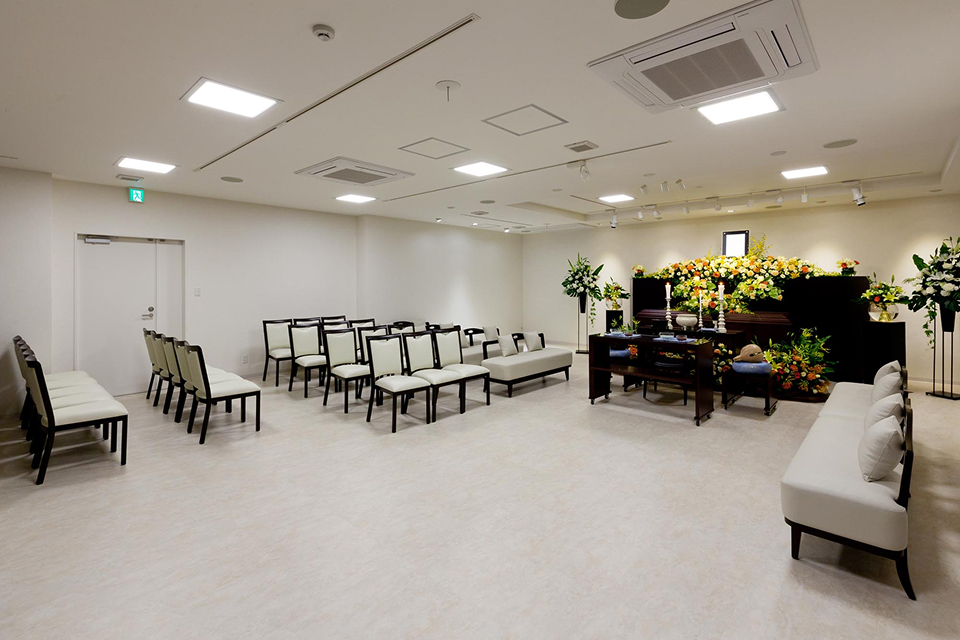 最大70名まで対応可能な式場・会食スペースを備えており、家族葬から一般葬まで幅広いご葬儀に対応しております。