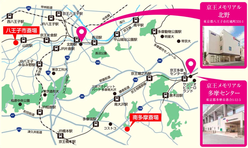 また、南多摩斎場や八王子市斎場へのアクセスも良好なため、火葬場へのご移動もスムーズに行える環境です。
