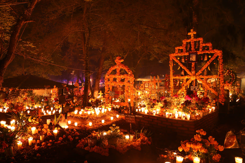 また、派手な衣装を着たり、骸骨を模したメイクを施し、大規模なパレードや音楽を楽しみながら故人を迎え、送り出します。