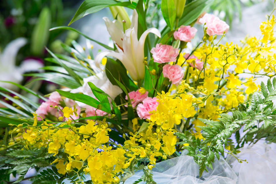 お葬式でお花を飾る場合、弊社では故人様がお好きだった色味などを伺ってお花を準備する事がございます。